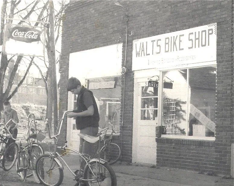 Ed Morton, a Springfield, MO bicycle dealer, suggested Walt begin selling imported bikes and bicycle parts in Columbia. After some bargaining with his parents, a young Walt rented a vacant barber shop on Hickman Avenue and Walt’s Bike Shop was born. Cycling’s “golden age” had begun in the United States, and Walt’s business boomed.